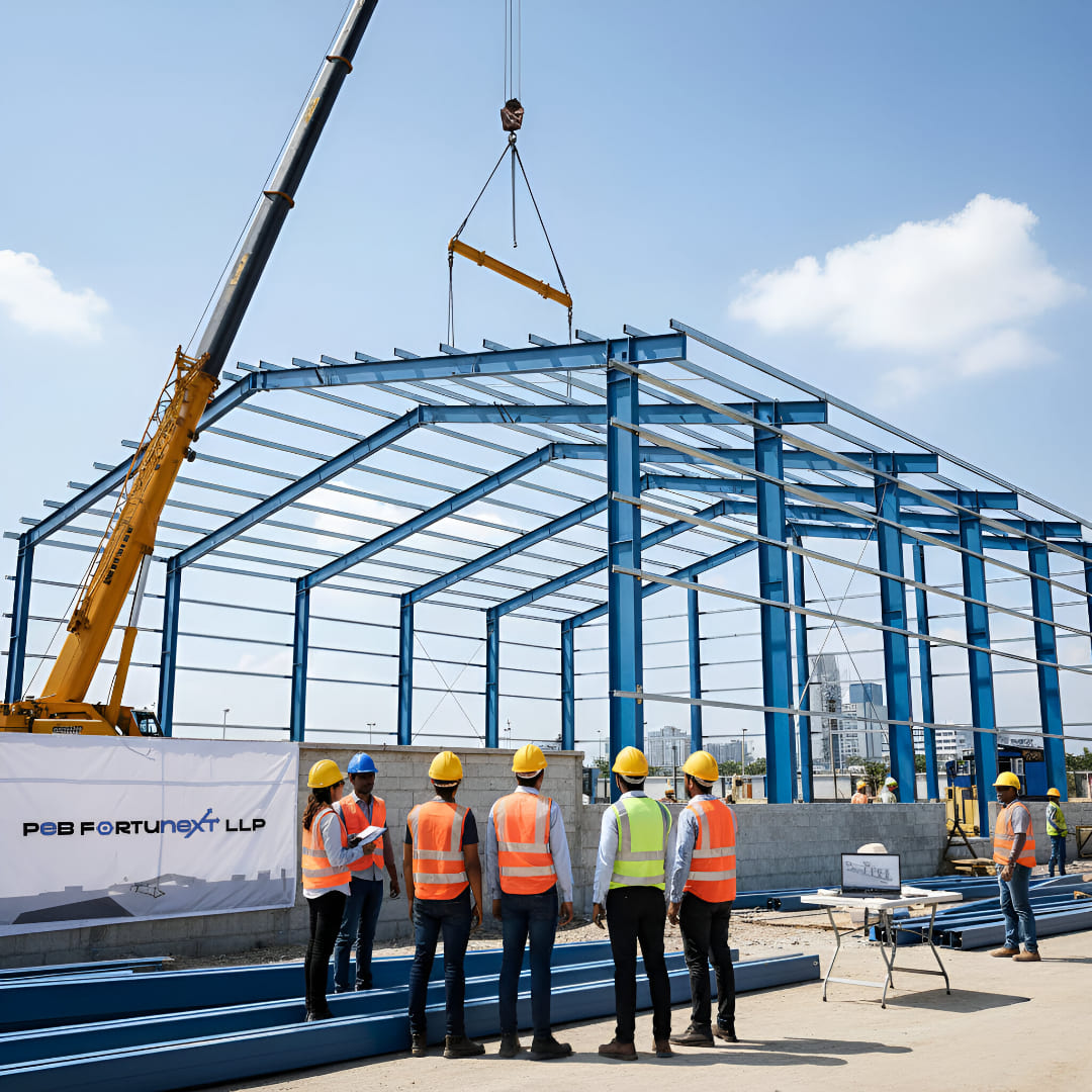 At PEB Fortunext, we don’t just fabricate steel structures — we engineer smart ecosystems. Our pre-engineered buildings (PEBs) are custom-designed, structurally optimized, and delivered on time, ensuring that you benefit from cost savings, speedy construction, and zero compromise on quality.